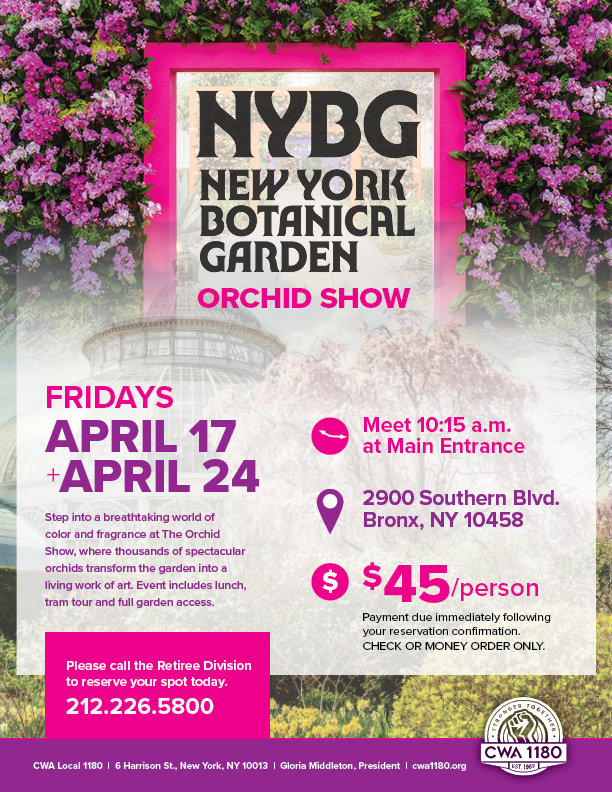 Call the Retiree Division to reserve your spot today: 212.226.5800